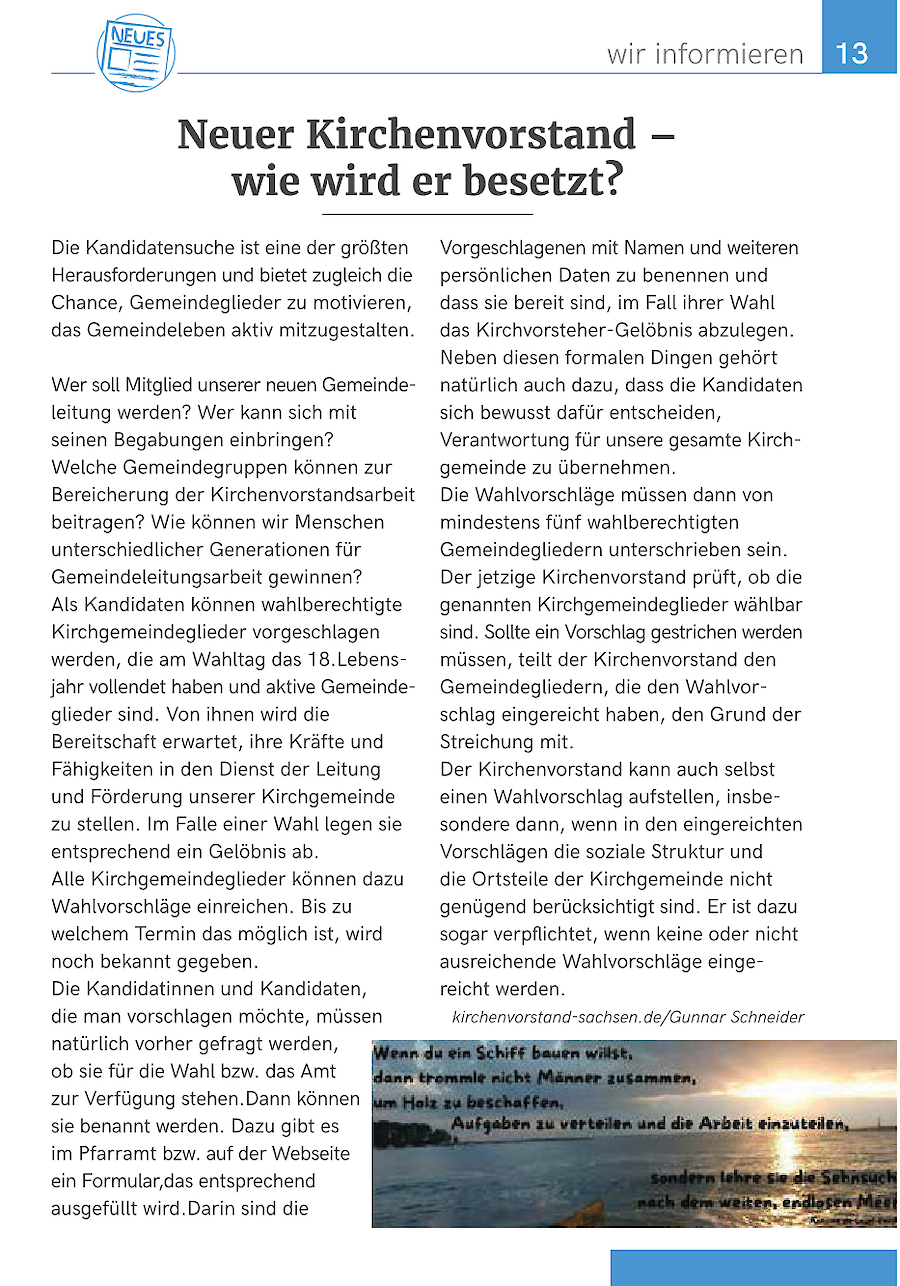 Neuer Kirchenvorstand - wie wird er besetzt?